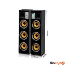 اسپیکر خانگی BB8100 با ابعاد 35 × 33 × 122 سانتیمتر، طراحی شیک و مدرنی دارد که میتواند به زیبایی دکوراسیون هر خانهای بیفزاید. این اسپیکر با بدنهای از جنس MDF ساخته شده است که علاوه بر زیبایی، دوام و مقاومت بالایی دارد. این اسپیکر دارای قابلیتهای اتصال بیسیم و با سیم است. نسخه بلوتوث 5.0 این امکان را فراهم میکند که به راحتی و بدون نیاز به کابل، دستگاههای مختلف خود را به اسپیکر متصل کنید. این نسخه از بلوتوث، اتصال پایدار و بدون قطعی را تضمین میکند. همچنین، این اسپیکر دارای رابطهای مختلفی از جمله BT، FM، AUX، USB و TF CARD است که امکان پخش موسیقی از منابع مختلف را برای شما فراهم میکند.